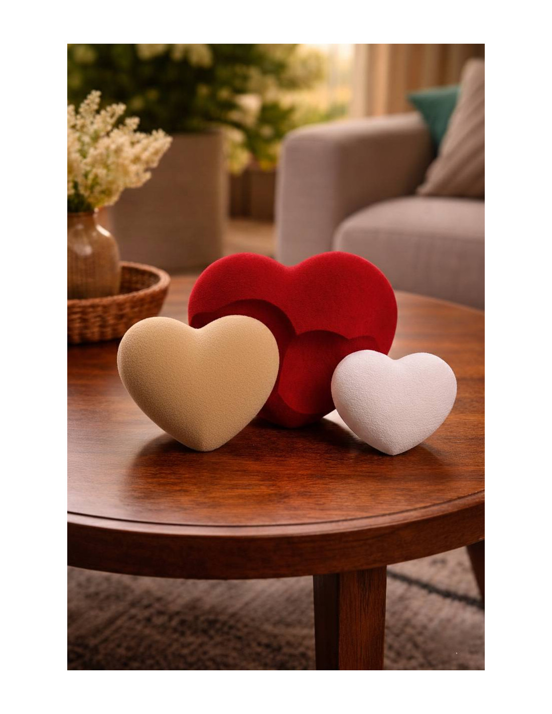 Dekorative Hjerter Sæt 3 Stk – Fuzzy Tekstur Hvid Rød Beige