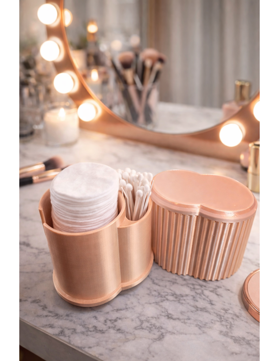 Elegant cosmetic organizer in peach with ribbed design and lid – 2 compartments for cotton pads, cotton swabs.