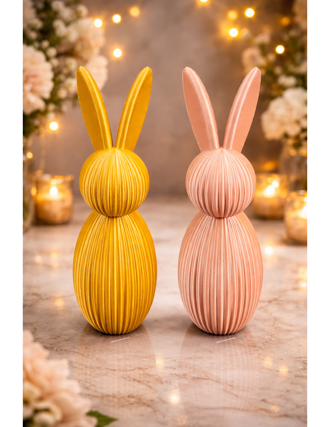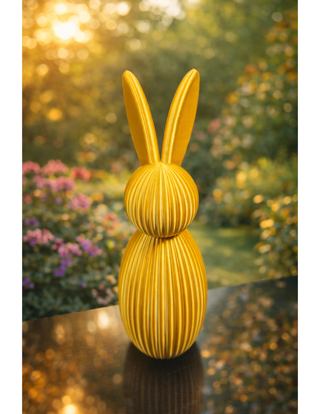 Make your Easter décor extra cozy with this modern and decorative Easter Rabbit figurine of approx. 16 cm. It is 3D printed with a stylish, ribbed design that gives an exclusive look and fits perfectly into both classic and minimalist homes.