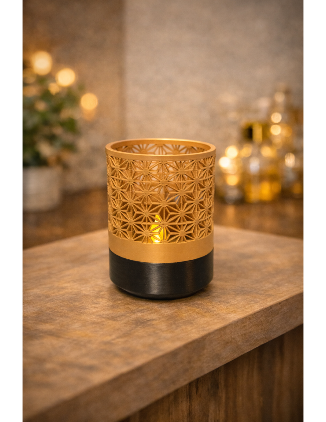 Create a cosy and stylish atmosphere in your home with this elegant 3D-printed tealight holder. The fine pattern gives an exclusive look and lets the light shine through beautifully, so you get a warm and comfortable glow on the table.