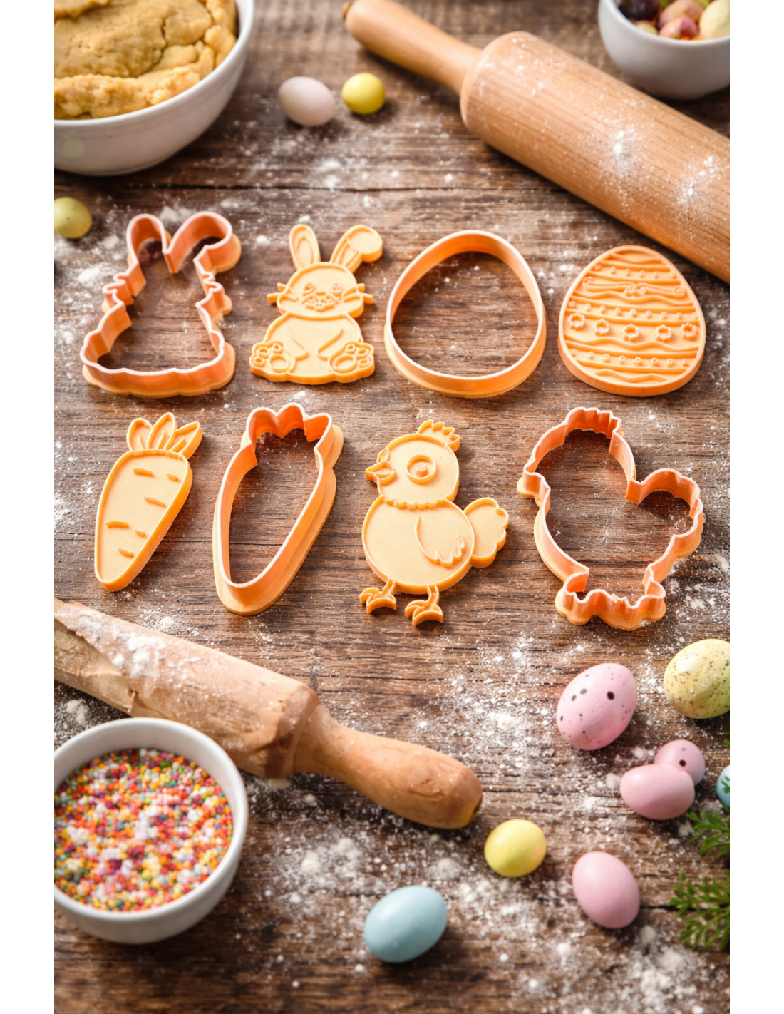 Make Easter baking extra fun with this 4-pack of cookie cutters with press plate. You get both the cutter and a matching press plate, so you can easily make a beautiful pattern in the dough – perfect for cookies, fondant, and creative baking.