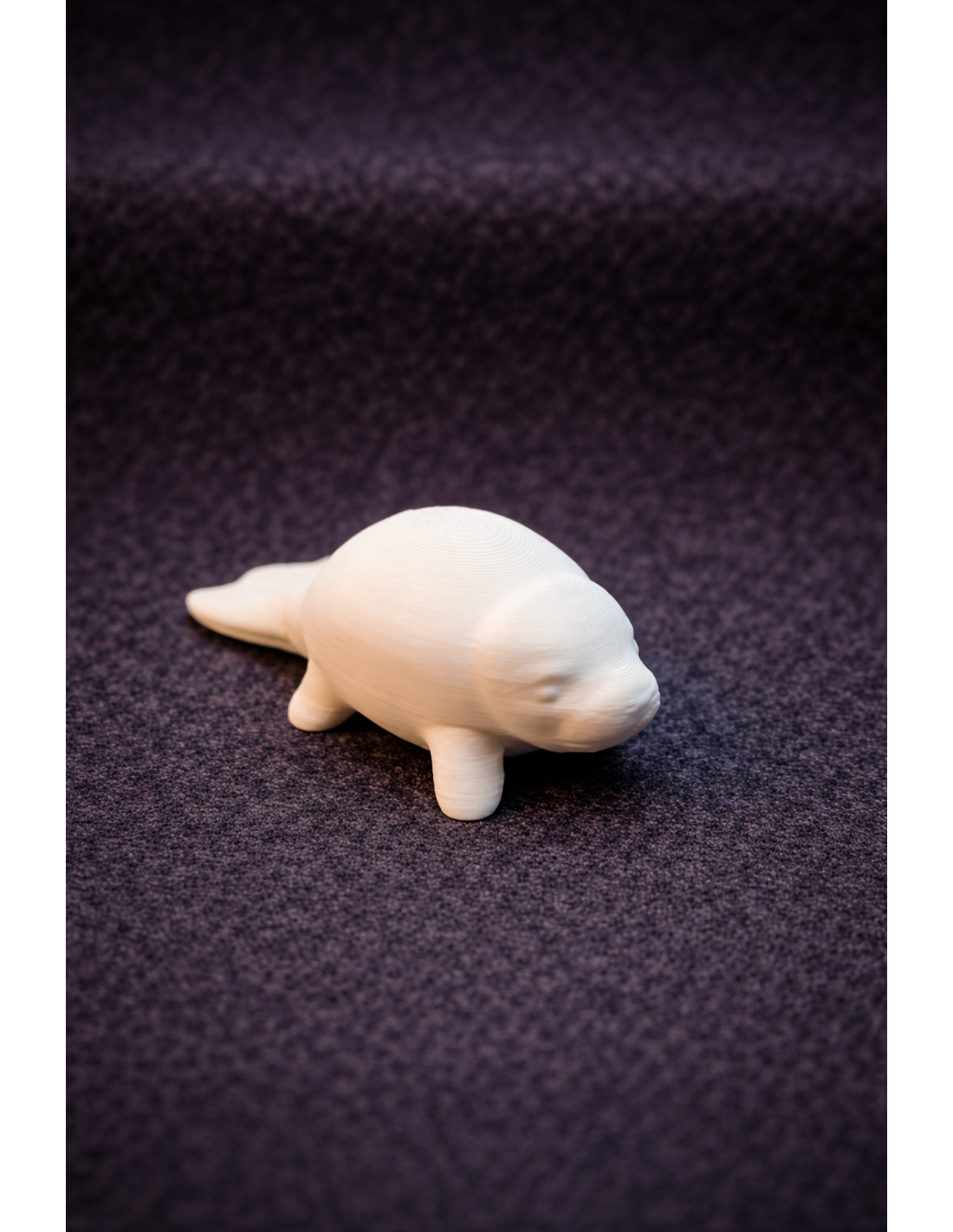 This charming manatee figure in white color is ready to be painted. With its distinctive shield and cute expression, it is perfect for creative projects.