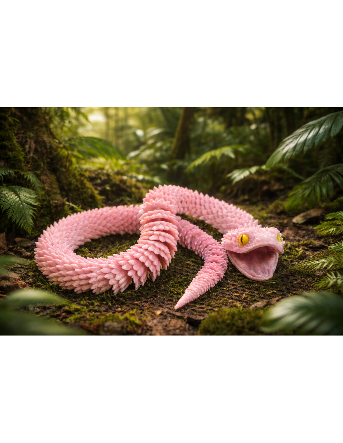Tilføj et unikt og kreativt element til din boligindretning med denne fleksible dekorative slange. Den smukke lyserøde farve og den skulpturelle tekstur med skæl-lignende detaljer gør denne figur til et ægte eyecatcher i ethvert rum. Slangens mund kan åbnes og lukkes.