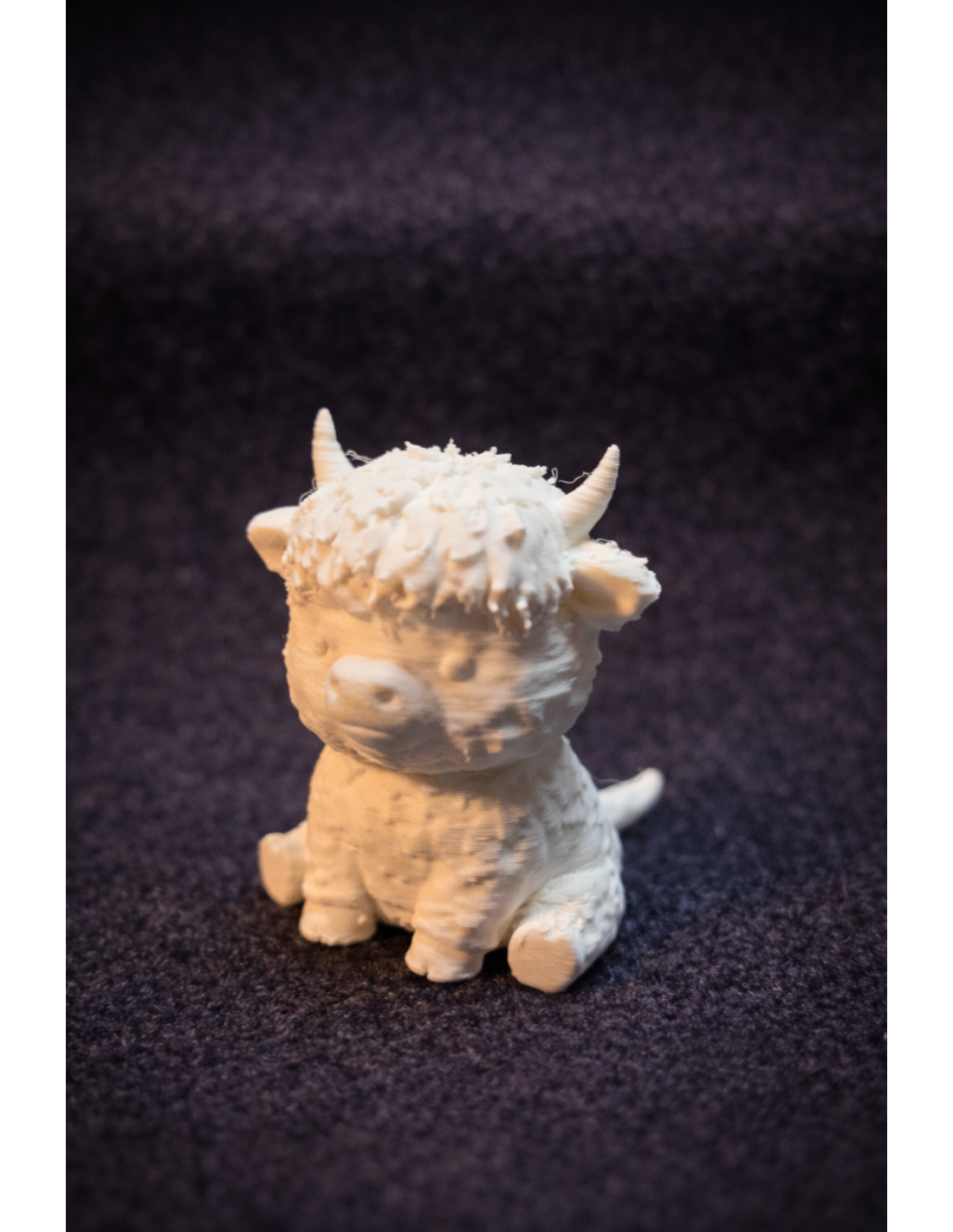 Denne charmerende highland ko figur i hvid farve er klar til at blive malet. Med sit karakteristiske langhårede pels og horn er den perfekt til kreative projekter.