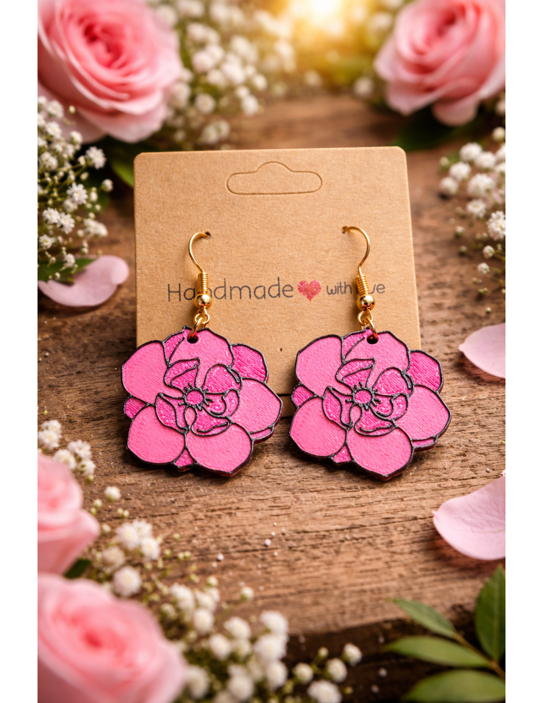 Giv dit look et friskt og feminint udtryk med disse 3D-printede blomst øreringe i en flot pink farve. De er perfekte som et lille farve-pop til hverdagen – og som en sød gaveidé til én, der elsker unikke accessories.