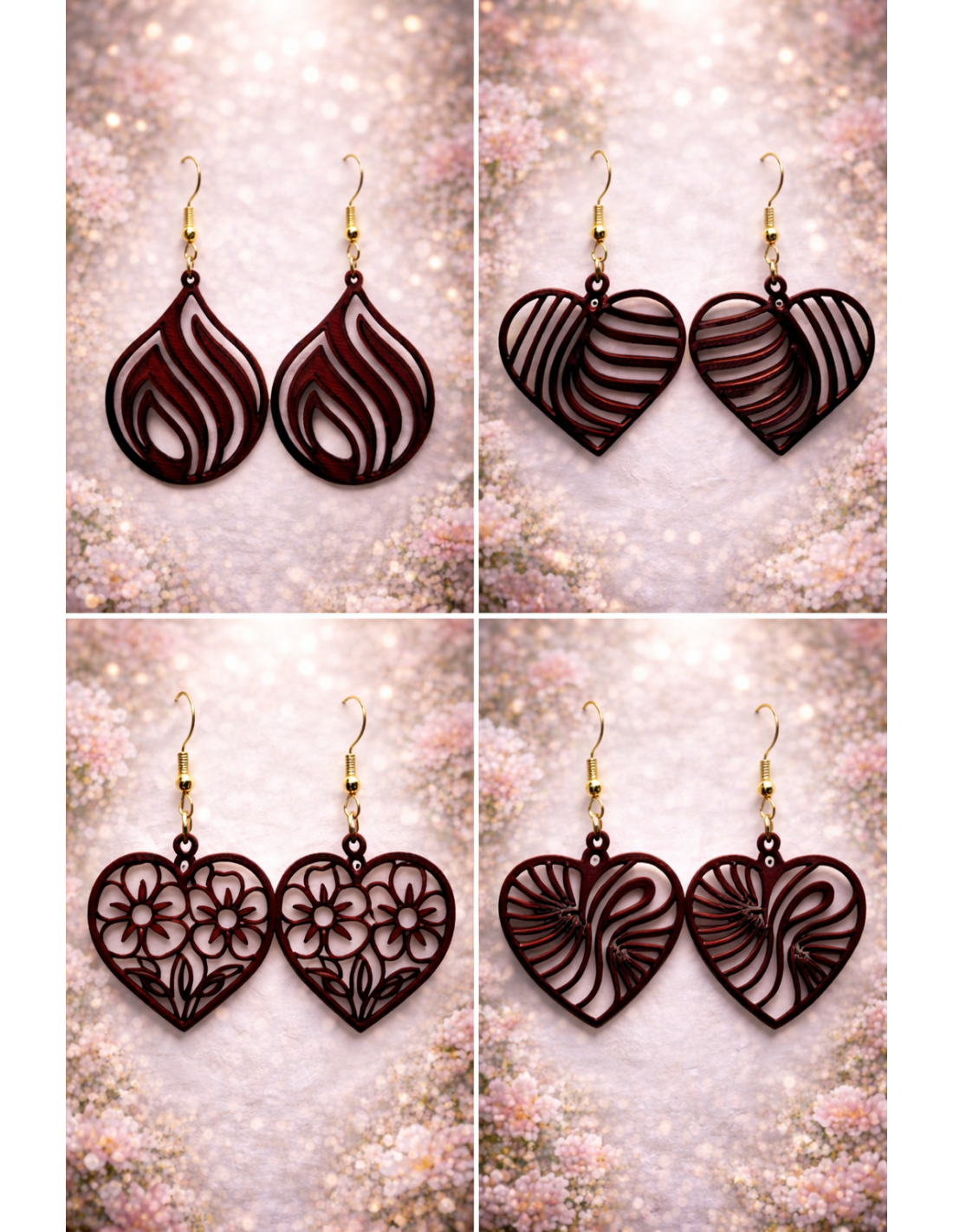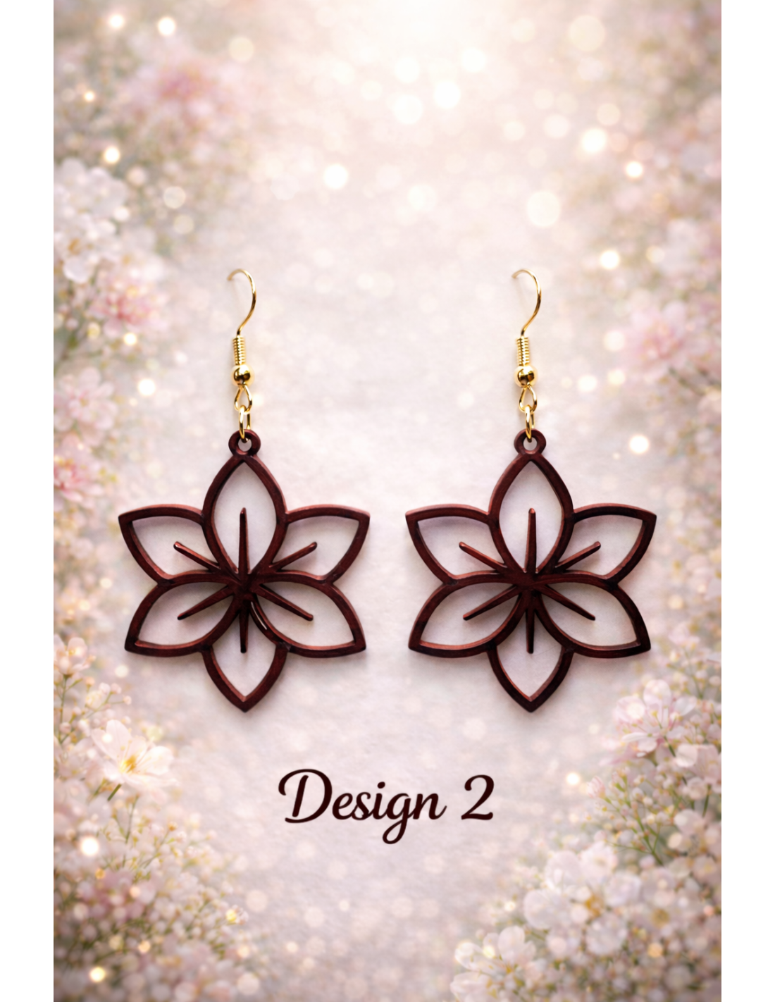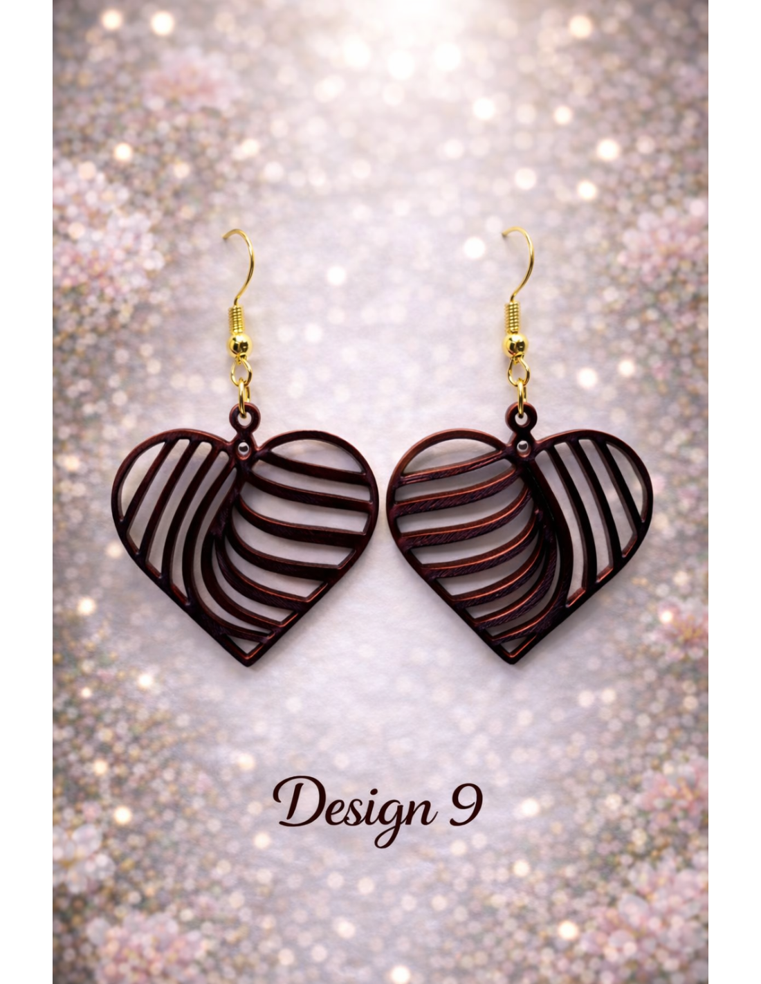 3D Printede Øreringe – Mahogni Træ-Look 9 Designs